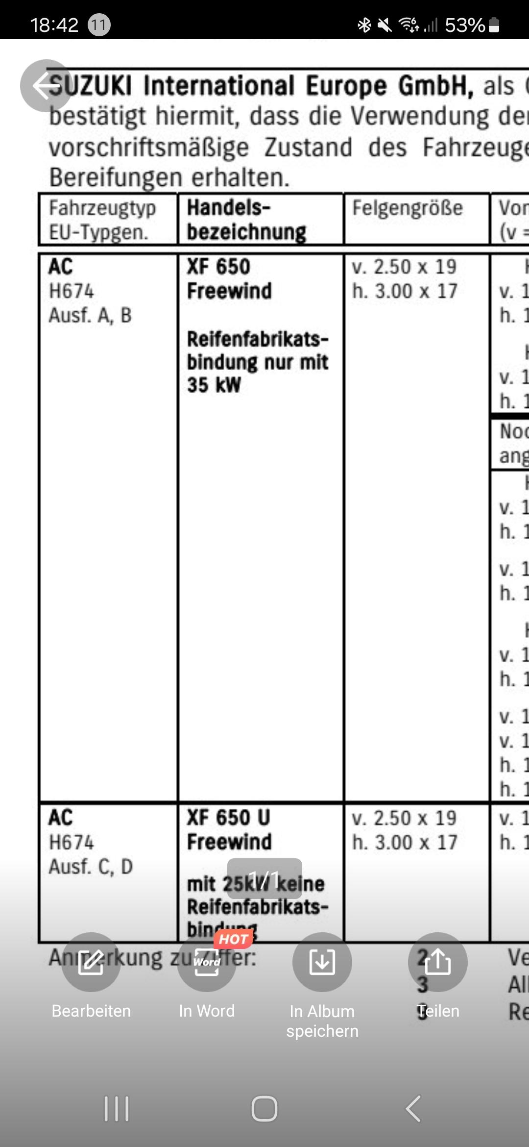 Aber in den ABE steht der Name xf 650 ,der amtl. Typ AC und die EG / ABE H674 und die steht nicht bei mir im Schein ...