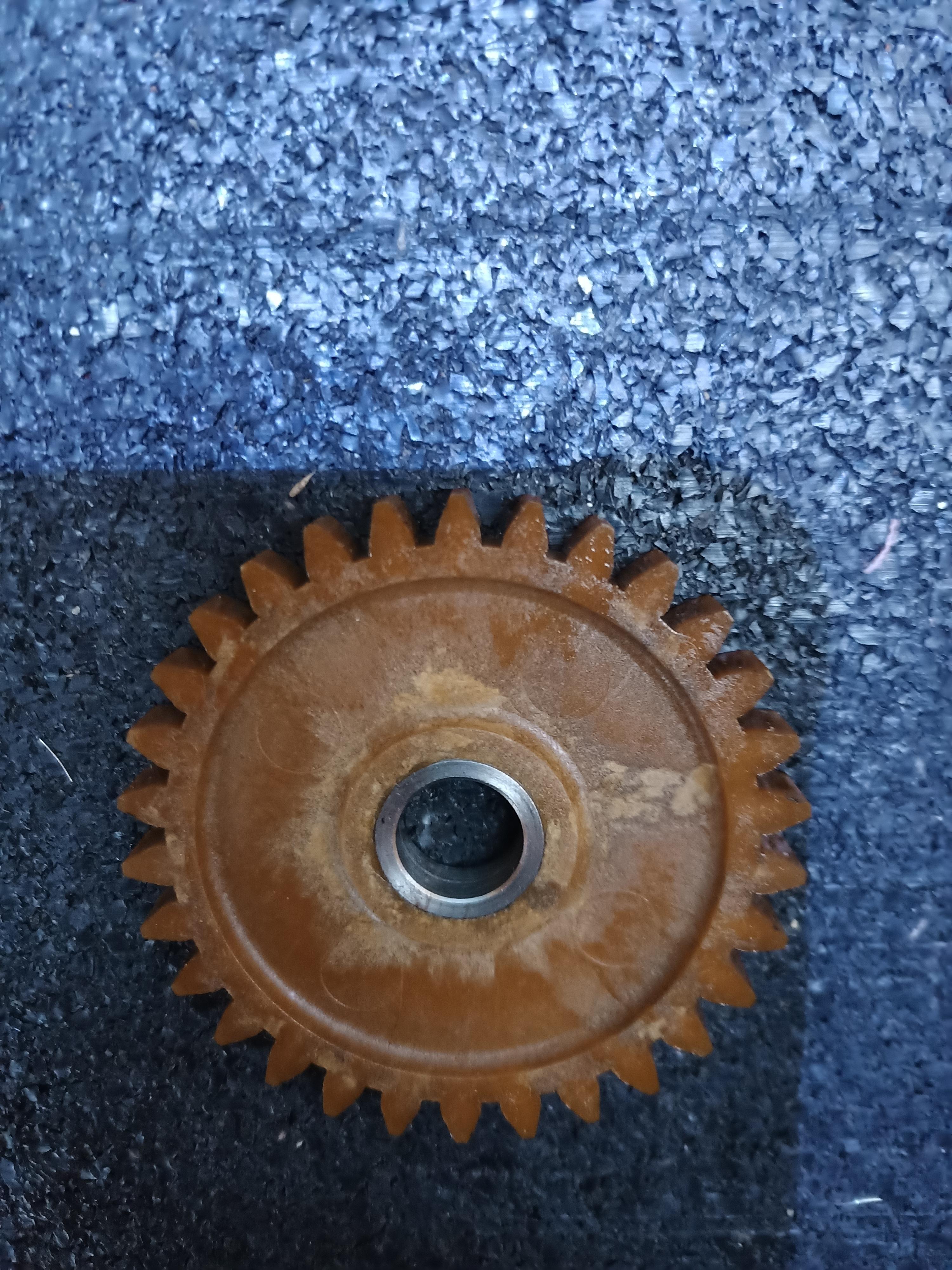 laut Teilekatalog hat das Zahnrad die Nummer 16321-32E00-000 und kostet knapp 20 Schleifen. Wenn man sorgsam ist, kann man die beiden Seegerringe wiederverwenden. Wer es ganz gründlich machen will, tauscht auch die Welle auf der das Rad läuft. -> 16322-32E01-000