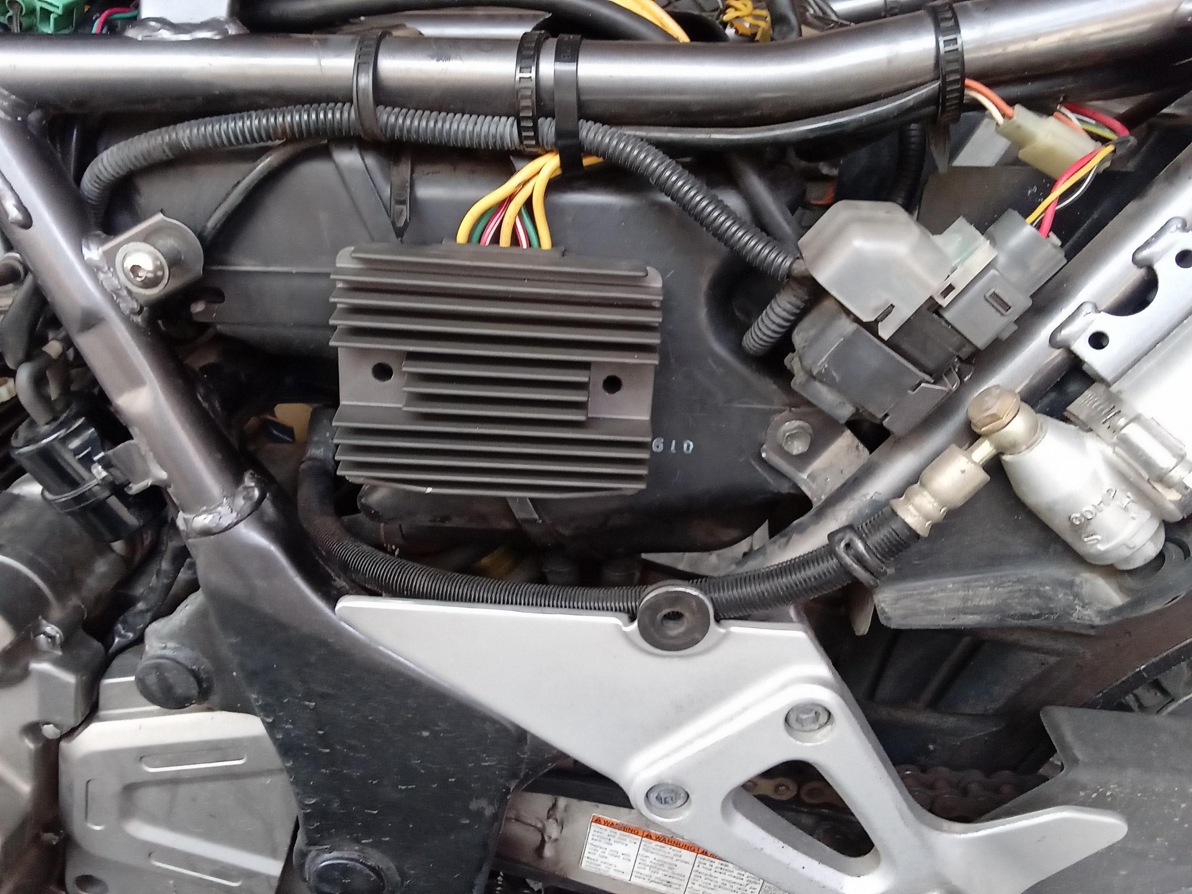 Vor 2Tagen habe ich den Ersatzregler temporär gegenüberliegenden vom Originalen am Luftkasten geparkt. Siehe Foto. Bisweilen bin ich - verteilt auf 2 kurze Touren - um die 60 Km ohne Zündaussetzer und Fehlzündungen gefahren.