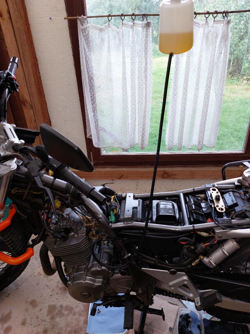 Auf jeden Fall habe ich jetzt einen Kanister nagelneues Öl mit hohem Kraftstoffanteil zu entsorgen.