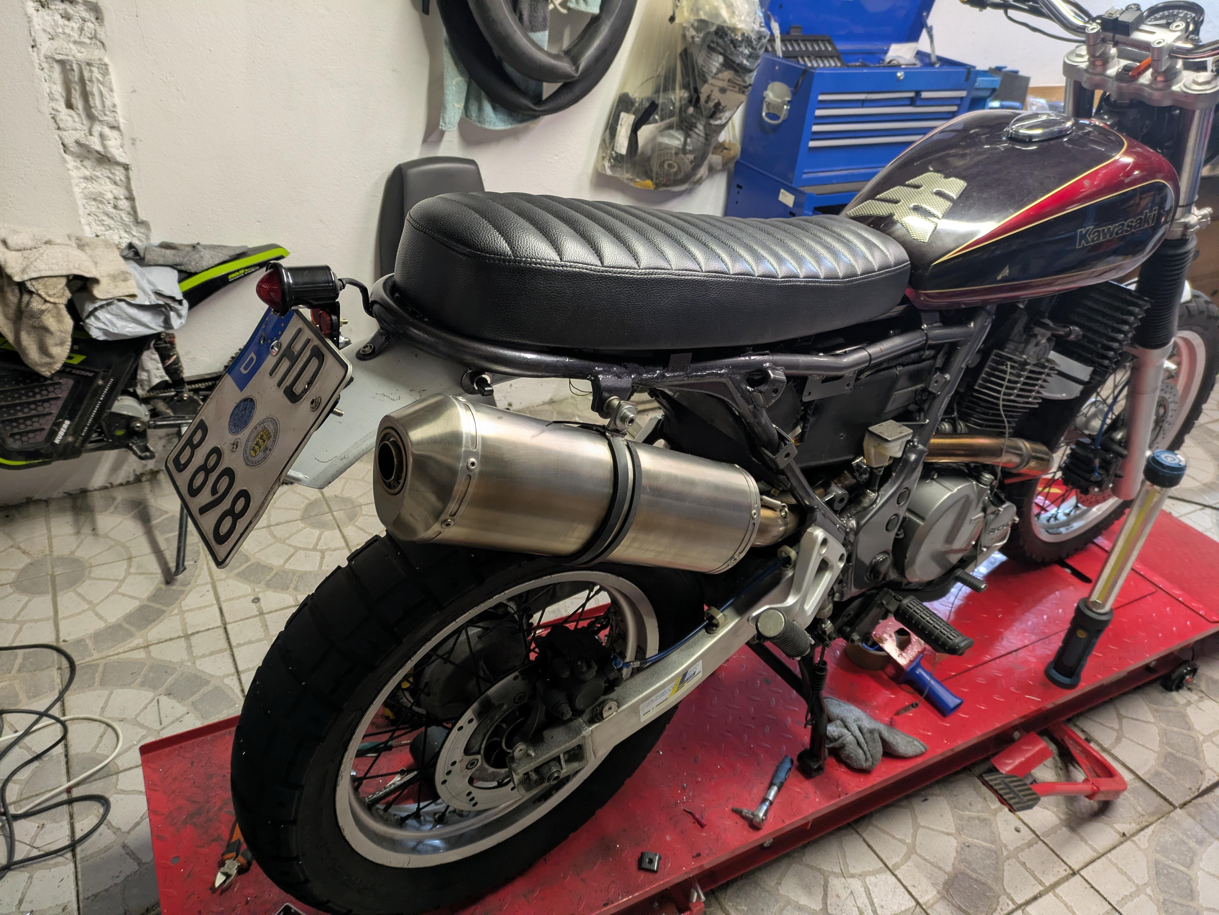 danke, jetzt den Loop und die Blinkerhalter angeschweißt und den Innenkotflügel etwas gechoppt und ein paar überflüssige Halter abgeflext. Ich finde die cleanere Optik ohne Haltebügel passt besser zu dem Projekt, was meint ihr?