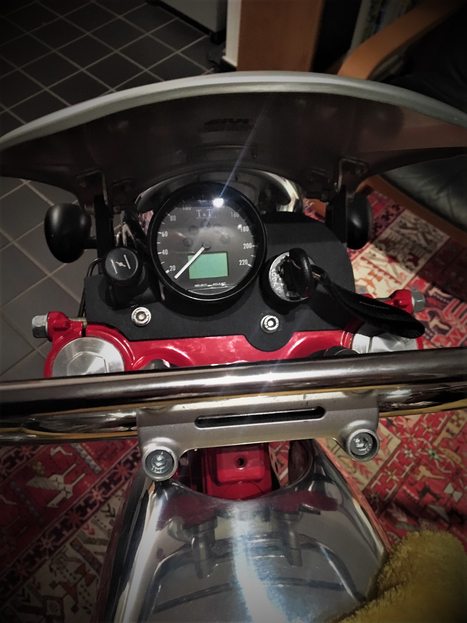 Das ist der erste Versuch mit einem GIVI Schild. Aus irgendeinem Grund sieht das sehr langgezogen aus - es ist aber eher rund.