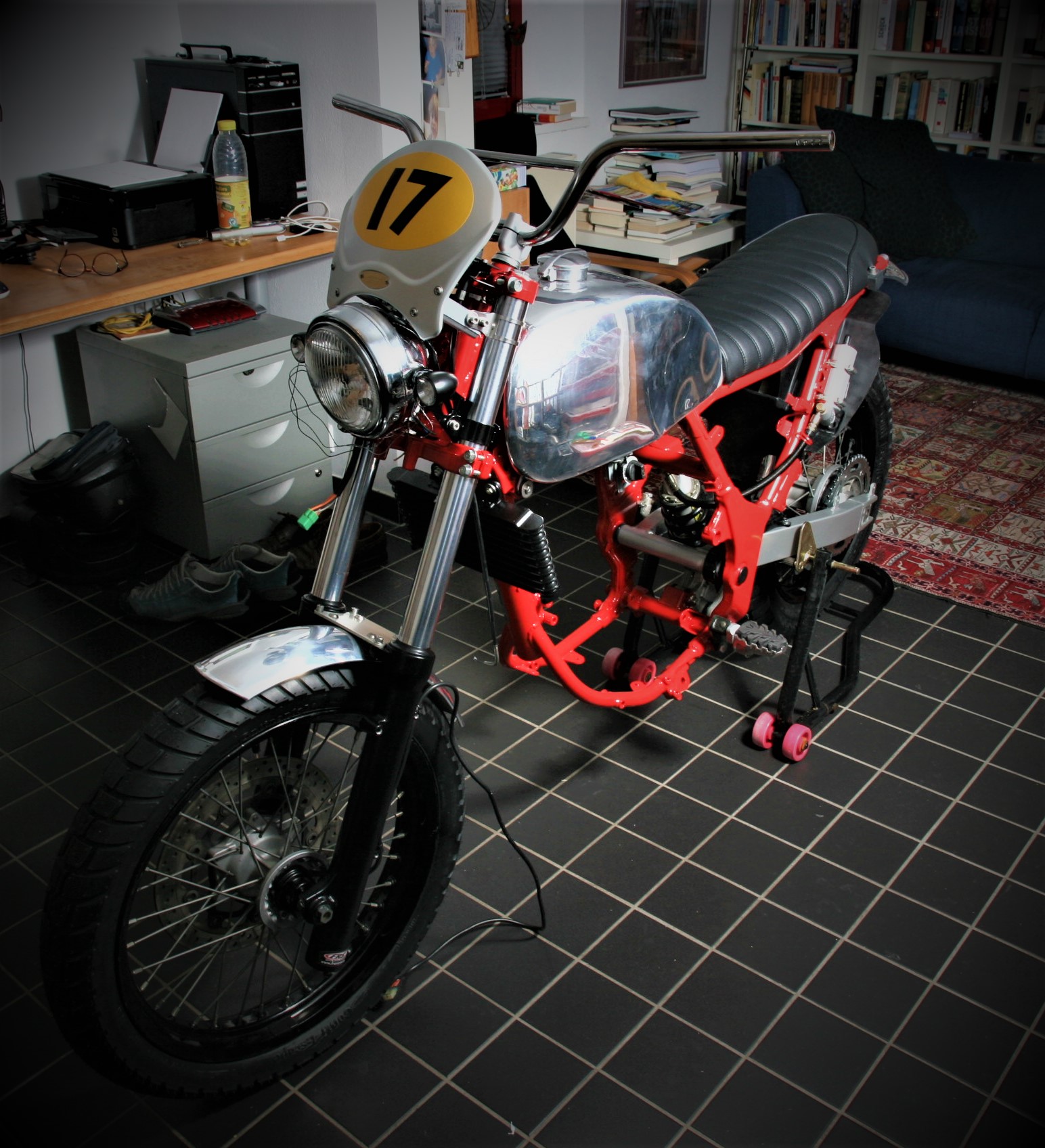 Steht jetzt auf eigenen Rädern, bzw. könnte stehen, wenn ein Ständer dran wäre.