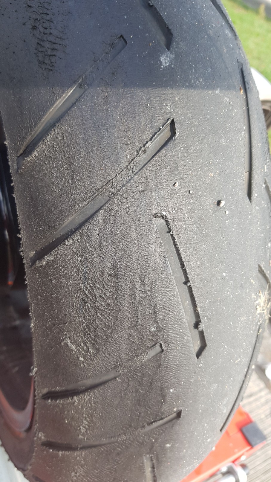 Hallöchen, also vorweg ... ich bin kein Experte, aber der Reifen auf dem Bild sieht eher so aus als ob das Fahrwerk/das Motorrad nicht richtig justiert war.