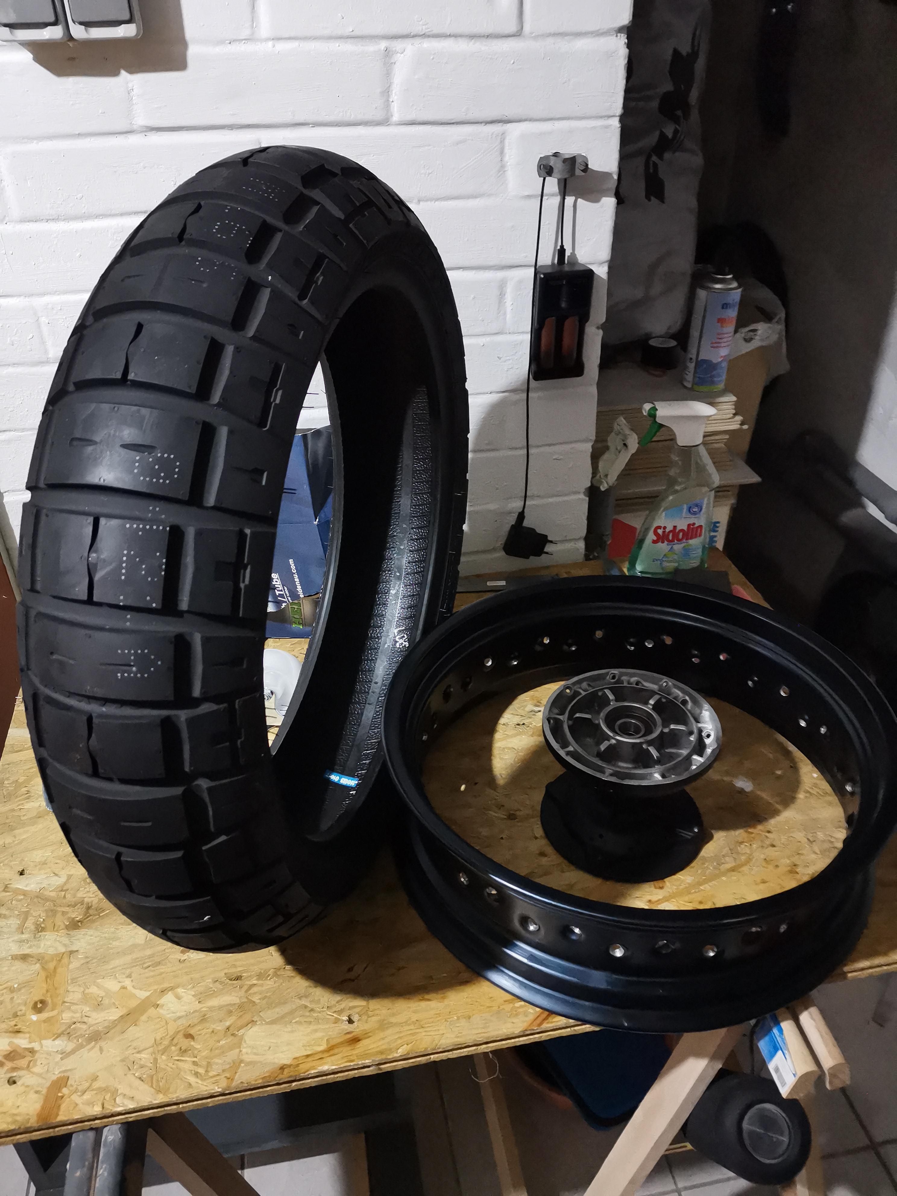 hinten kommt ein 150/60 17 66H str rally auf ne 4,5" Behr Felge,