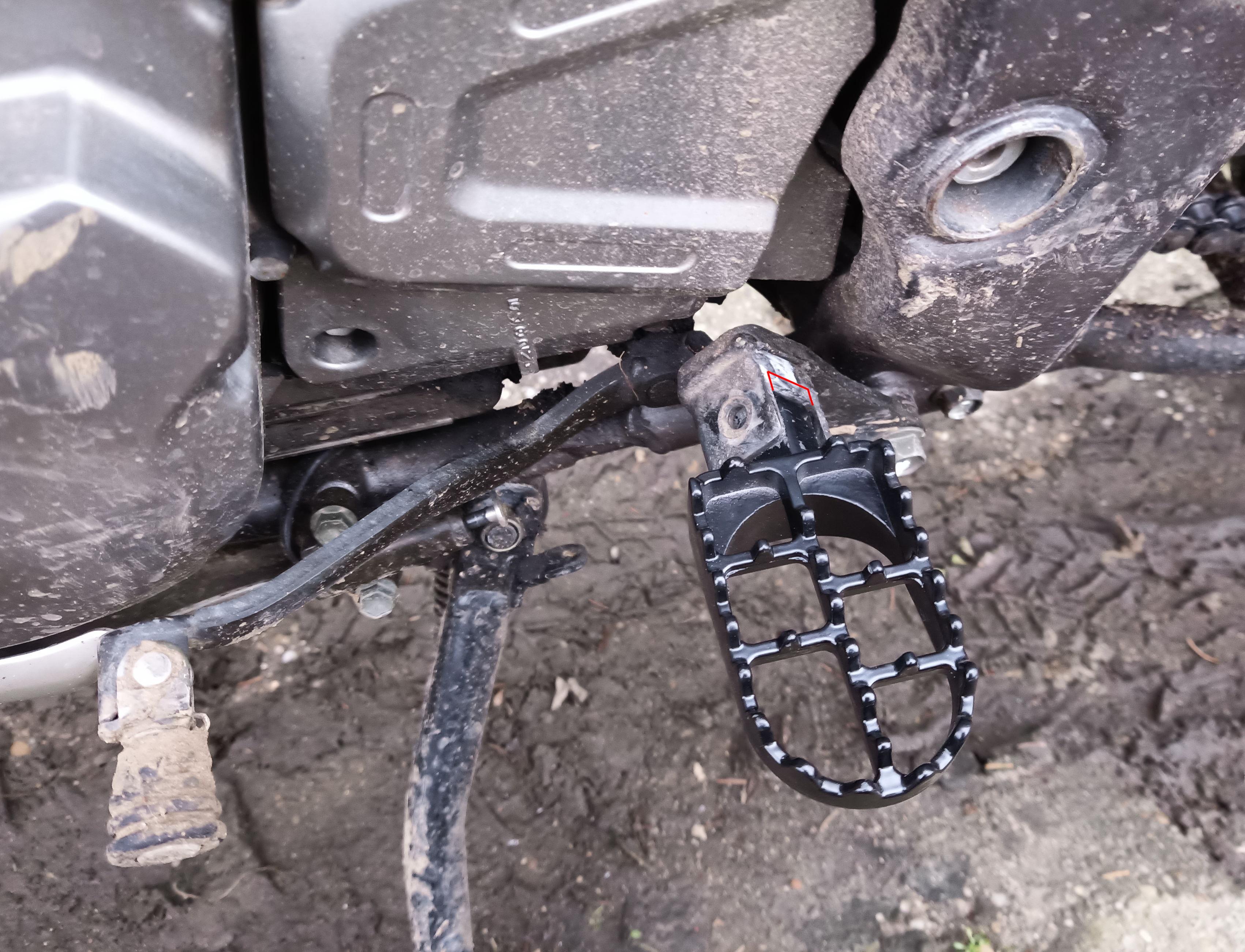 Die Louis Fußrasten hatte ich zuerst. Habe sie aufgeflext und zusammengevbogen damit sie in die XF-Aufnahmen passen. Dazu passte der Winkel nicht. Sie sind somit nicht klappbar. Daher war es nur eine Frage der Zeit bis meine kaltverformt wurden durch Umfallen.