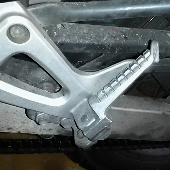 Die hinteren Rasten kann man recht gut gegen Alurasten austauschen. Meine hab ich von einer Kawasaki ZZR. Man muss lediglich die Anschlagbleche von der Kawa leicht anpassen.