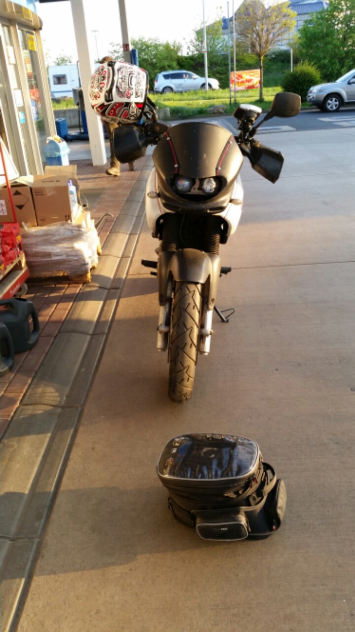 Das dürfte bislang einer meiner teuersten Stürze sein. Lenker, Kupplungs- und Schalthebel, Hauptständer und sogar der Chokezug sind im Eimer. Muss jetzt mal sehen, was ich noch an Teilen da hab. Würde eigentlich gerne übers Wochenende fahren. Außerdem hat sich die komplette Untauglichkeit des Bordwerkzeugs herausgestellt.