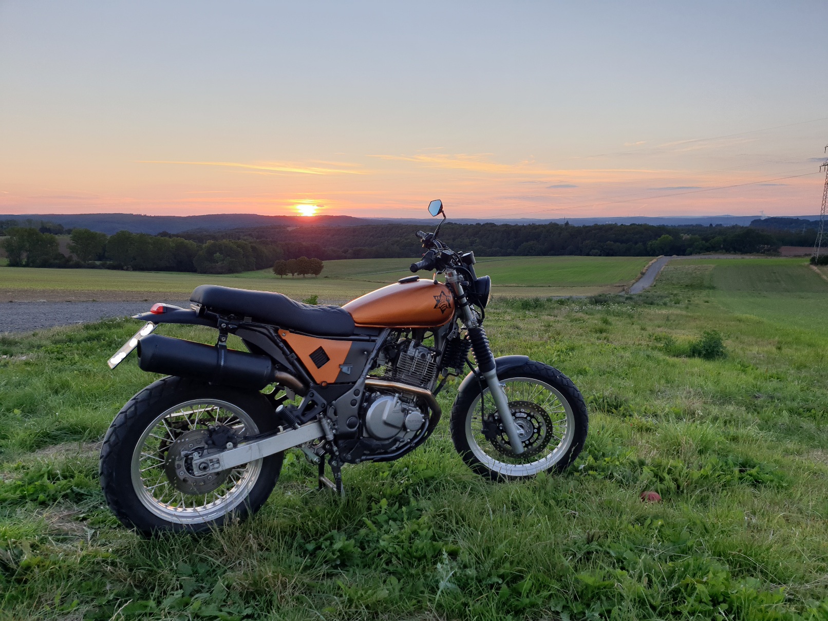 Der Sommer neigt sich wieder dem Ende. Mit neuem TÜV habe ich noch eine Feierabendrunde gedreht. Für die kurzen Tage liegen schon ein paar Teile bereit. Progressive Gabelfedern aus dem Forum und der Tank könnte sich evtl. ändern.