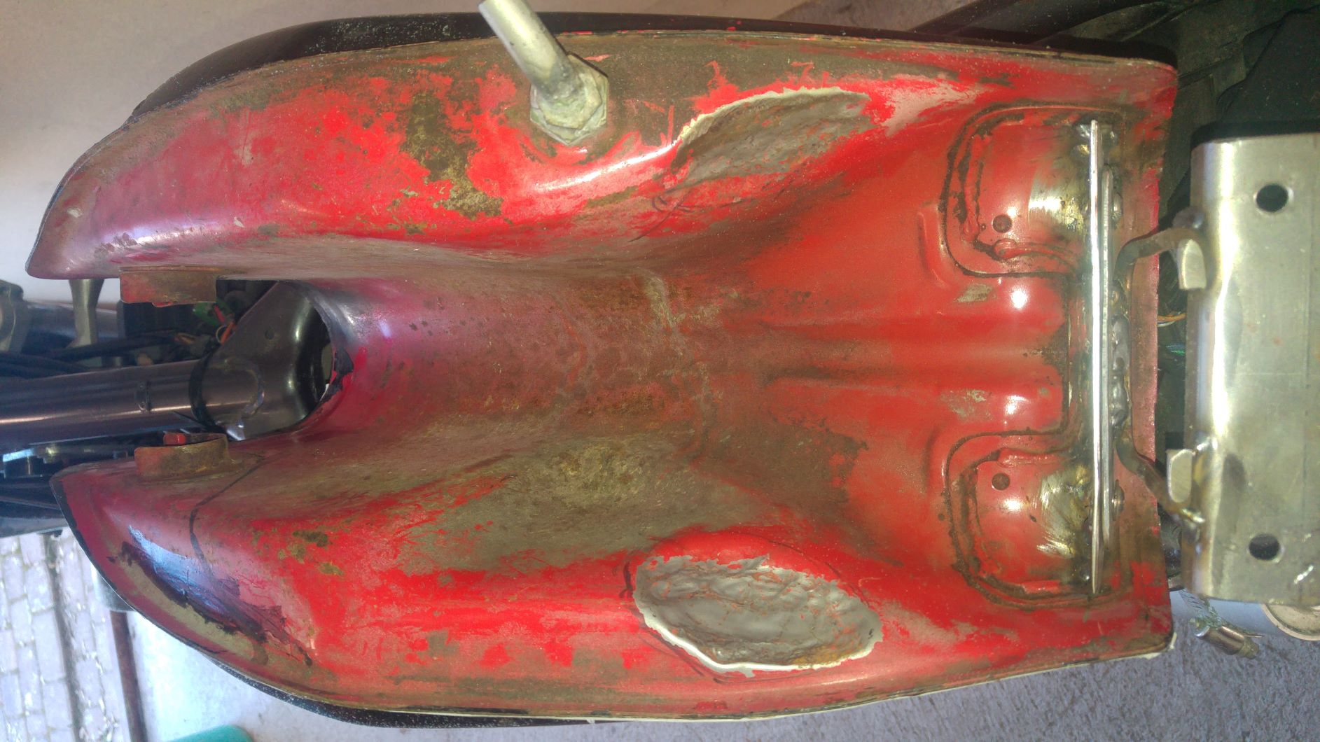 Ich habe Bilder gemacht von der Befestigung und von dem Bereich wo ich mit dem Kugelhammer den Tanktunnel eingebeult habe.