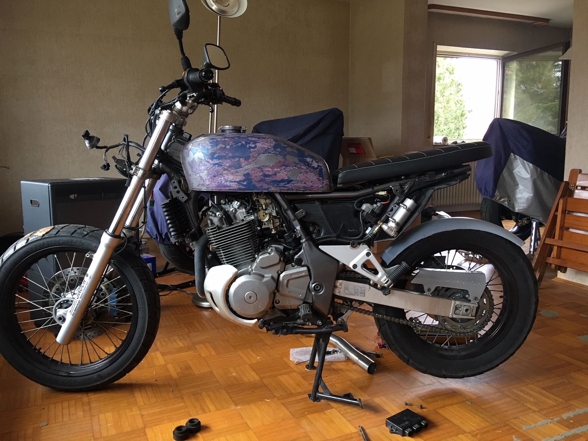 Da wir ab und an in Spanien sind und dort Enduro fahren richtig Spaß macht und keiner dir den Spaß verbieten will, musste so was her. Jedoch die verkappten Crosser mit viel Plastik gefallen mir nicht und die Serienscrambler sind mir doch zu Schade um in den Dreck zu werfen, was bei Enduro fahren vorkommen sollte. Da ich über den Winter Zeit hatte kaufte ich mir eine Freewind. Warum? Hat ein 19" Vorderrad (Optik) und einen relativ modernen Einzylinder mit 48 PS. Nachfolgend Bilder für den ersten Eindruck und umfangreicher dann im Bereich Umbauten.