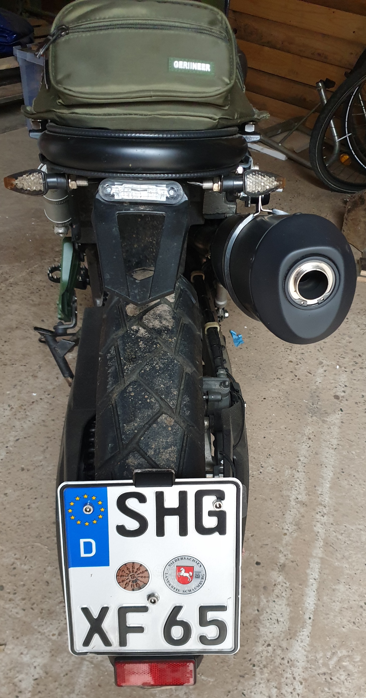 Werde ihn um ca. 16 cm kürzenlassen dann müsste der Auspuff ca. An der Stelle sitzen oder weiter unten.(siehe Bild) Alleine Fotografiert es sich schlecht