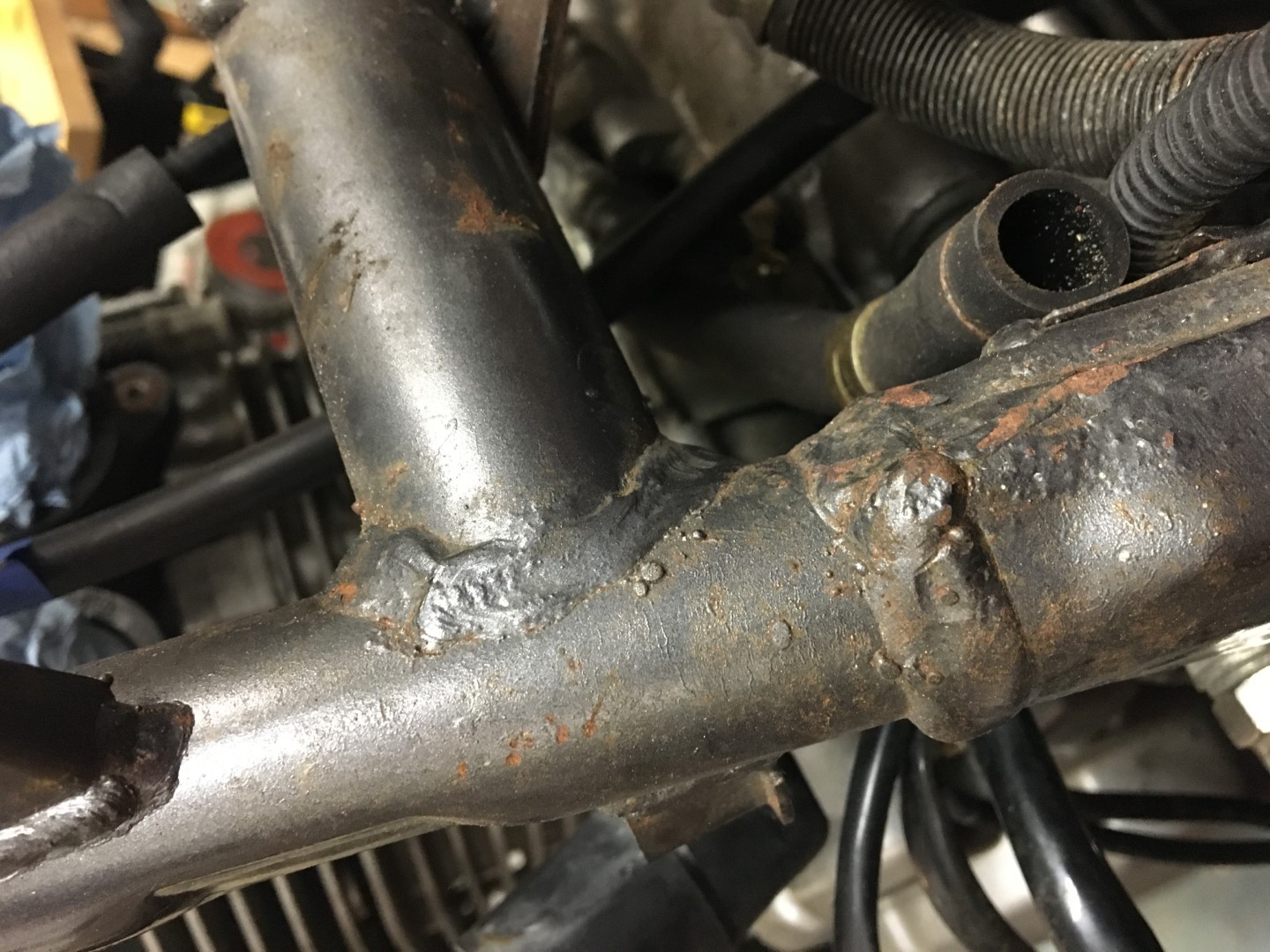 Zum Vergleich habe ich nur unsere Honda CB von '77 und die Monkey von '76. Da sehen die Schweißnähte deutlich ordentlicher aus.