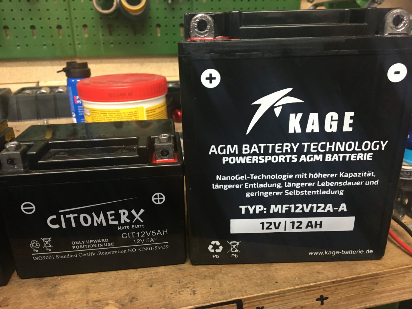 - Habe noch zwei weitere Batterien getestet, einmal 6Ah worüber die XF natürlich nur müde gelächelt hat und eine 12Ah aus meiner Honda