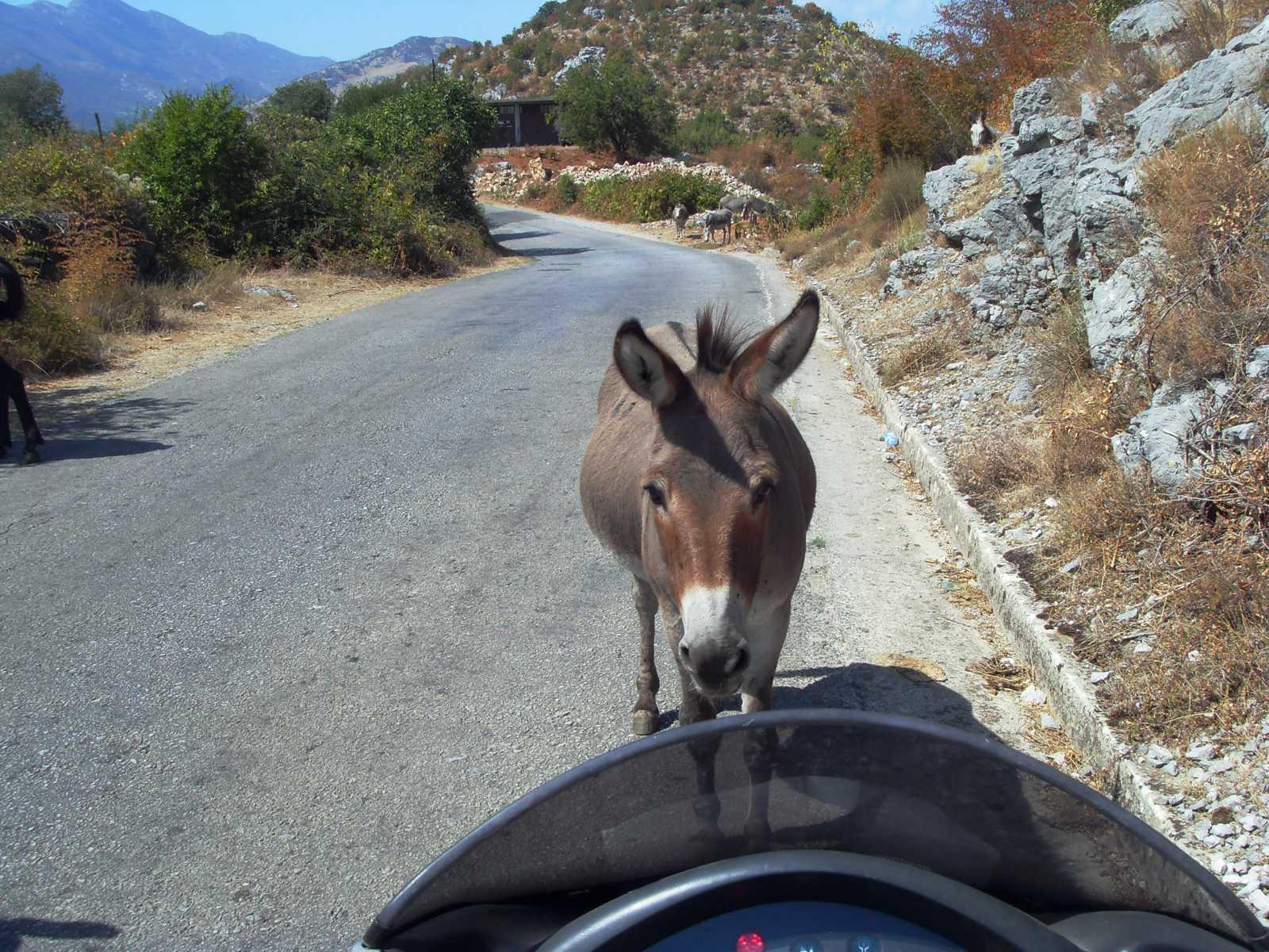 Eine kleine Herde Maulesel zeigte sich sehr motorradinteressiert: