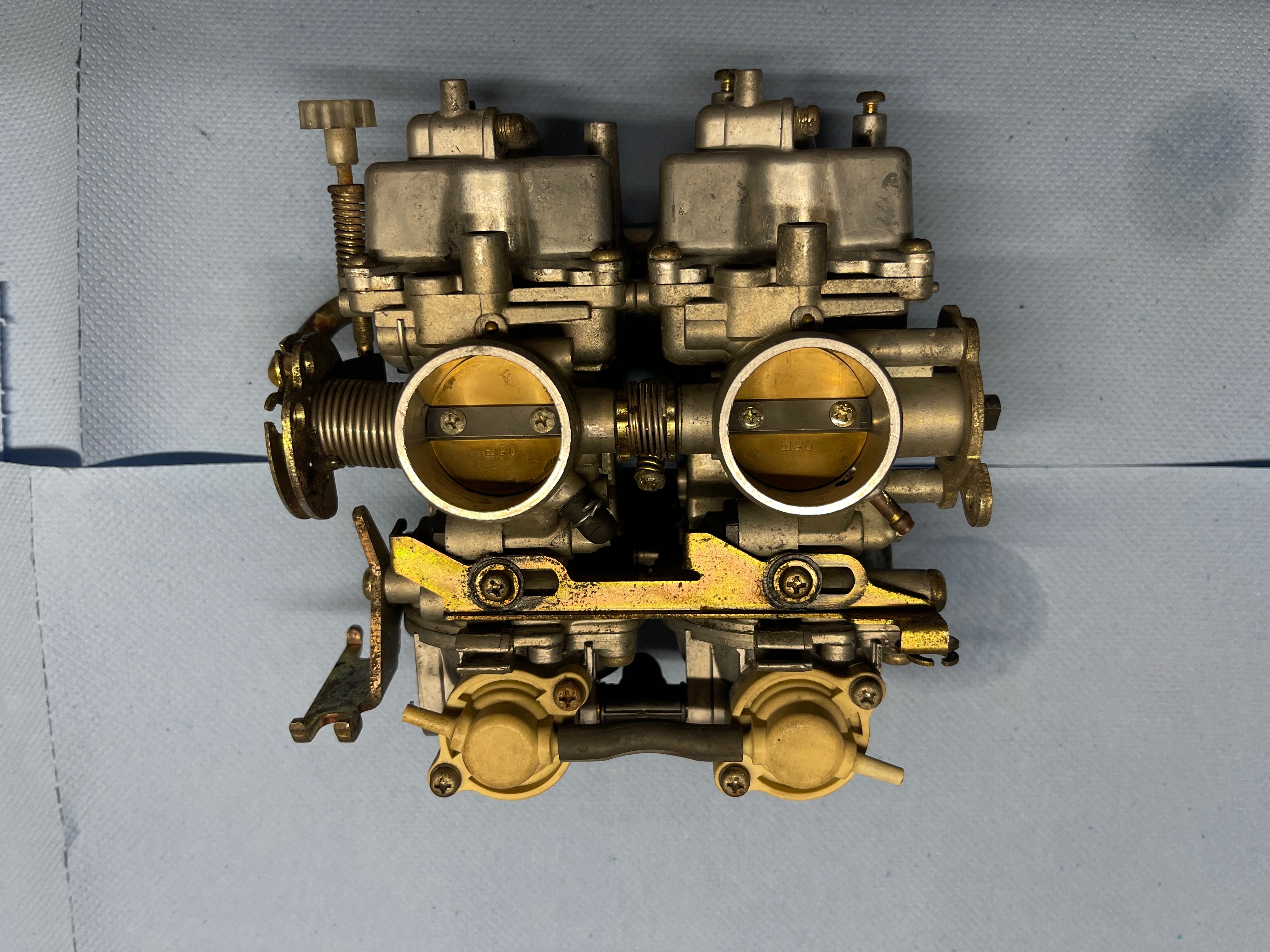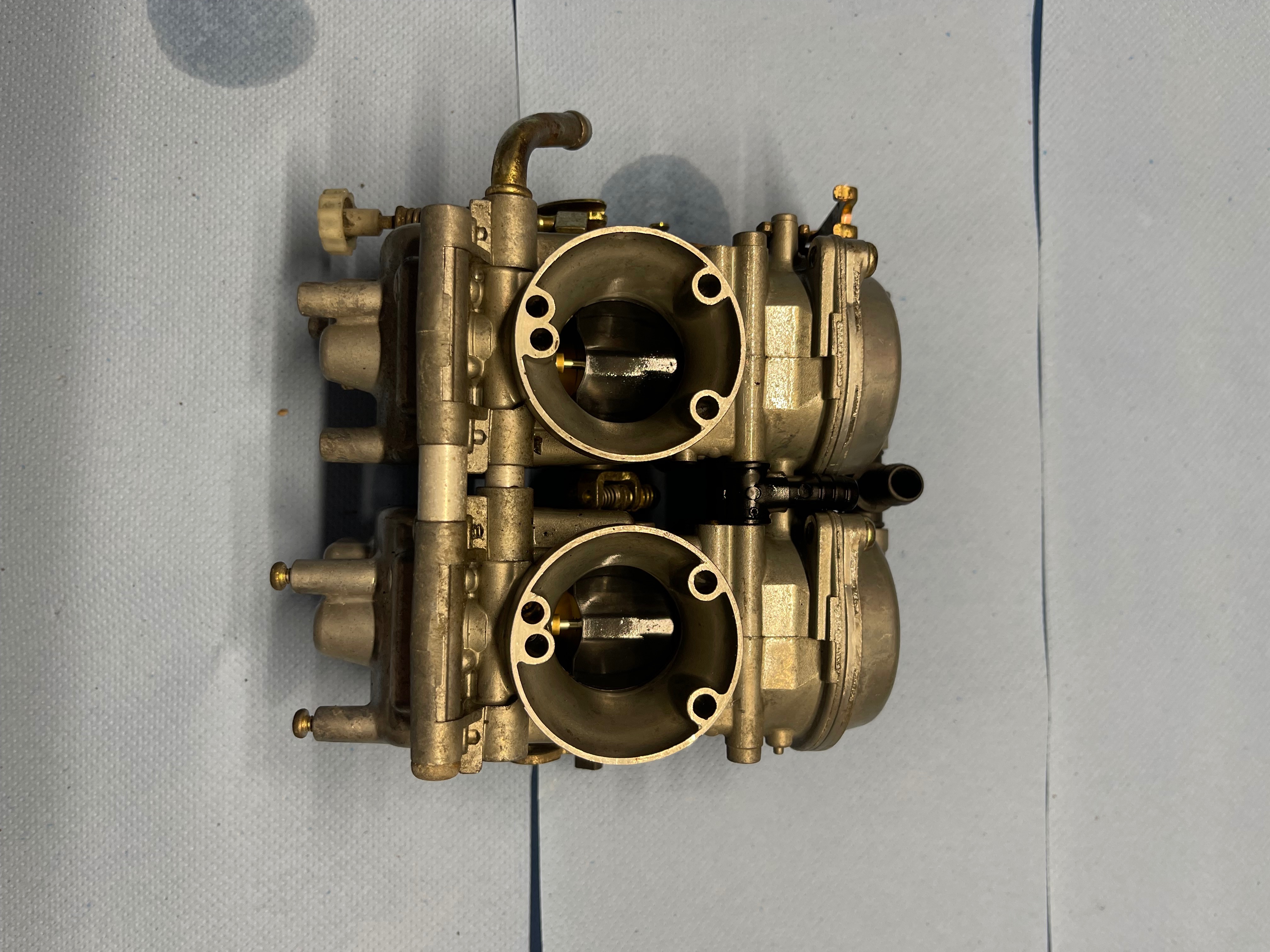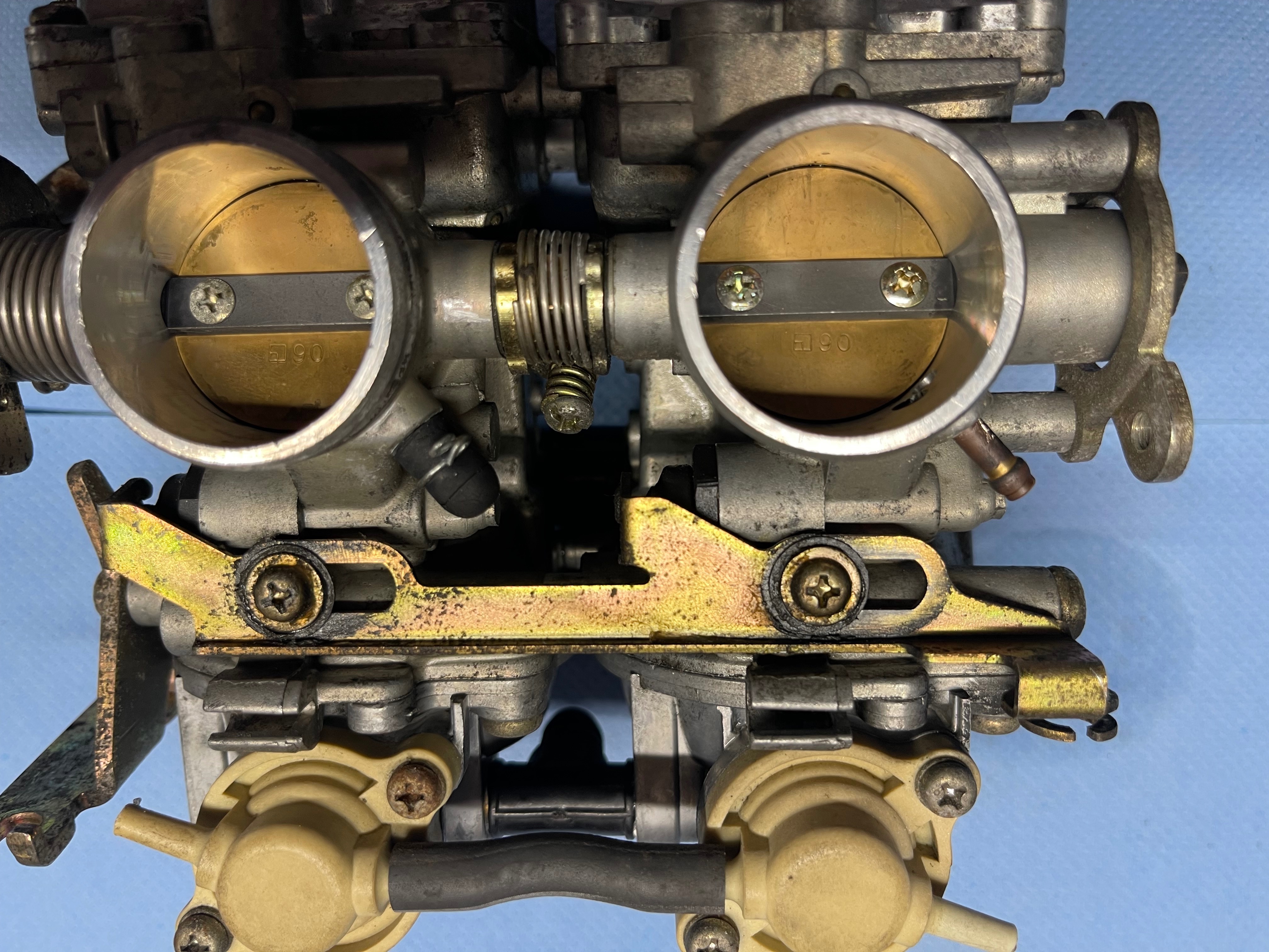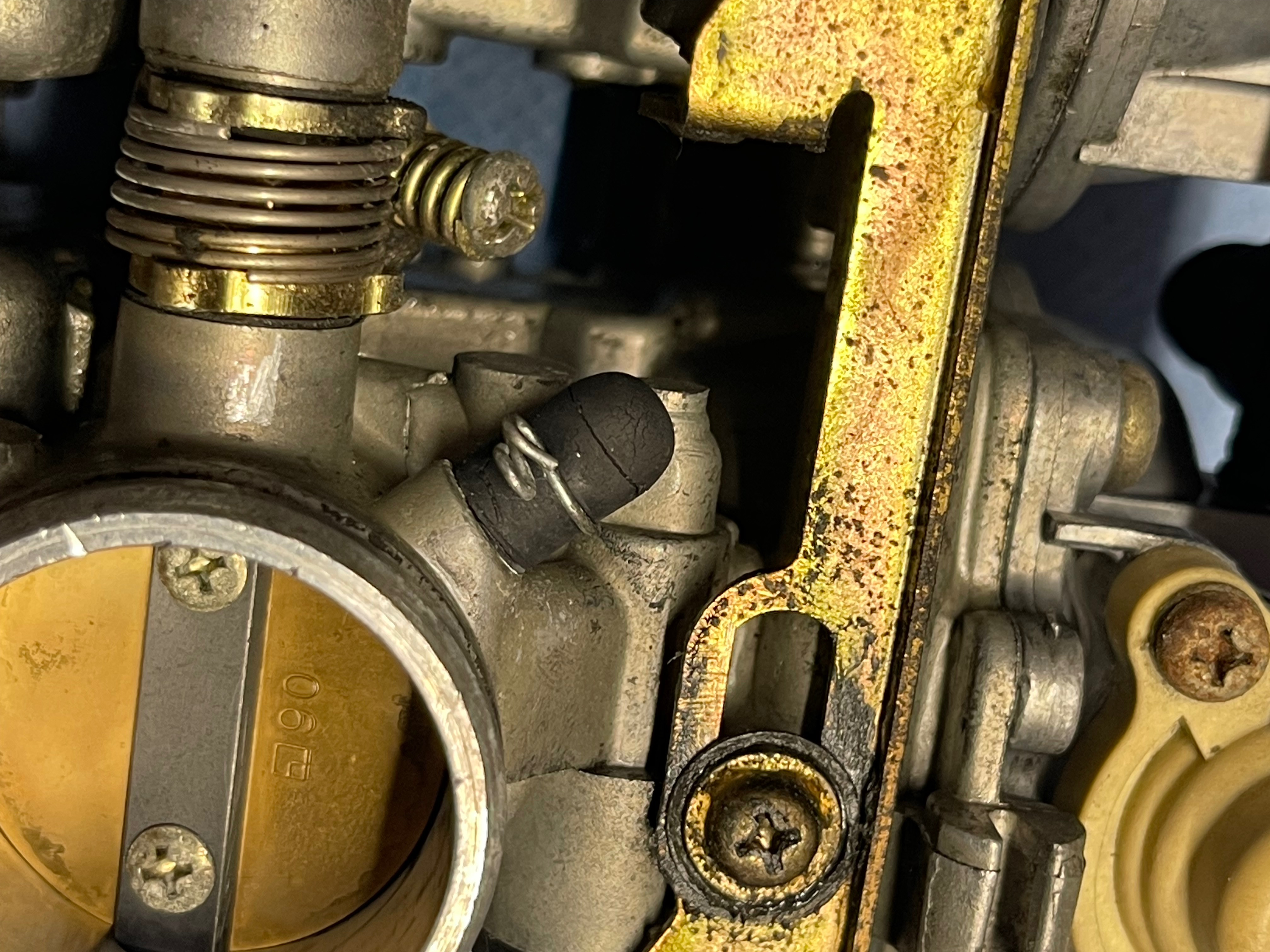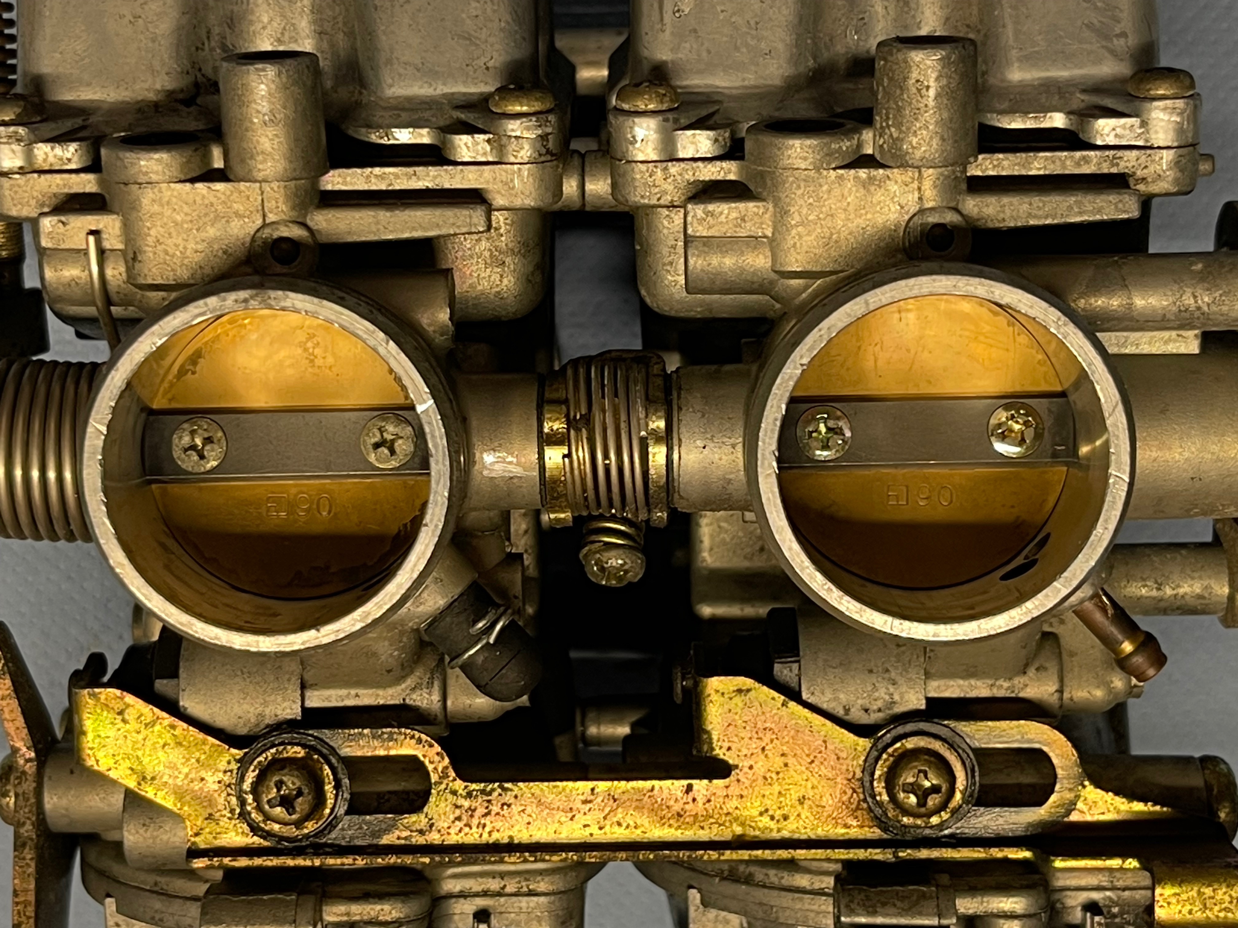 Was mir auffällt, ist das die 2 Schrauben vom linkten Vergaser (Drosselklappe?) oxidiert sind und die 2 rechten nicht.