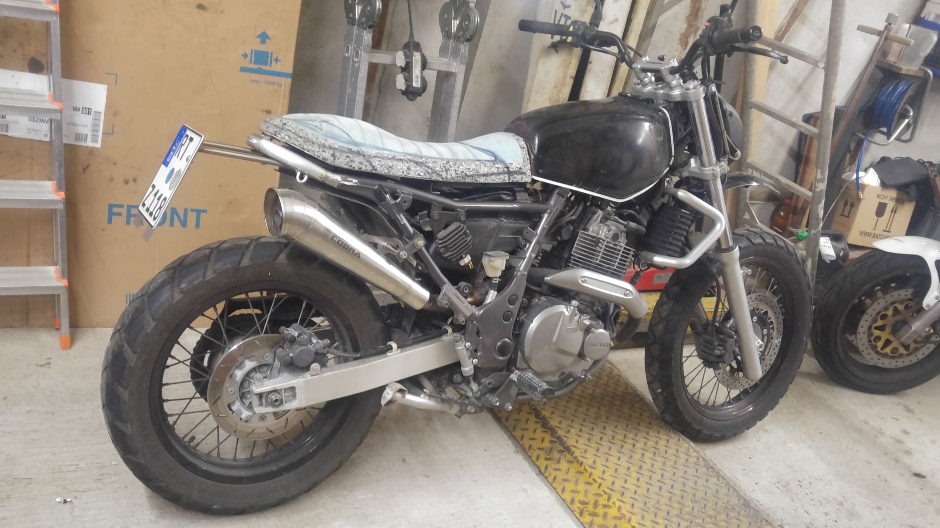 Hallo noch ein paar Bilder vom aktuellen Stand der Sitzbank und Kennzeichenhalter und Auspuff .