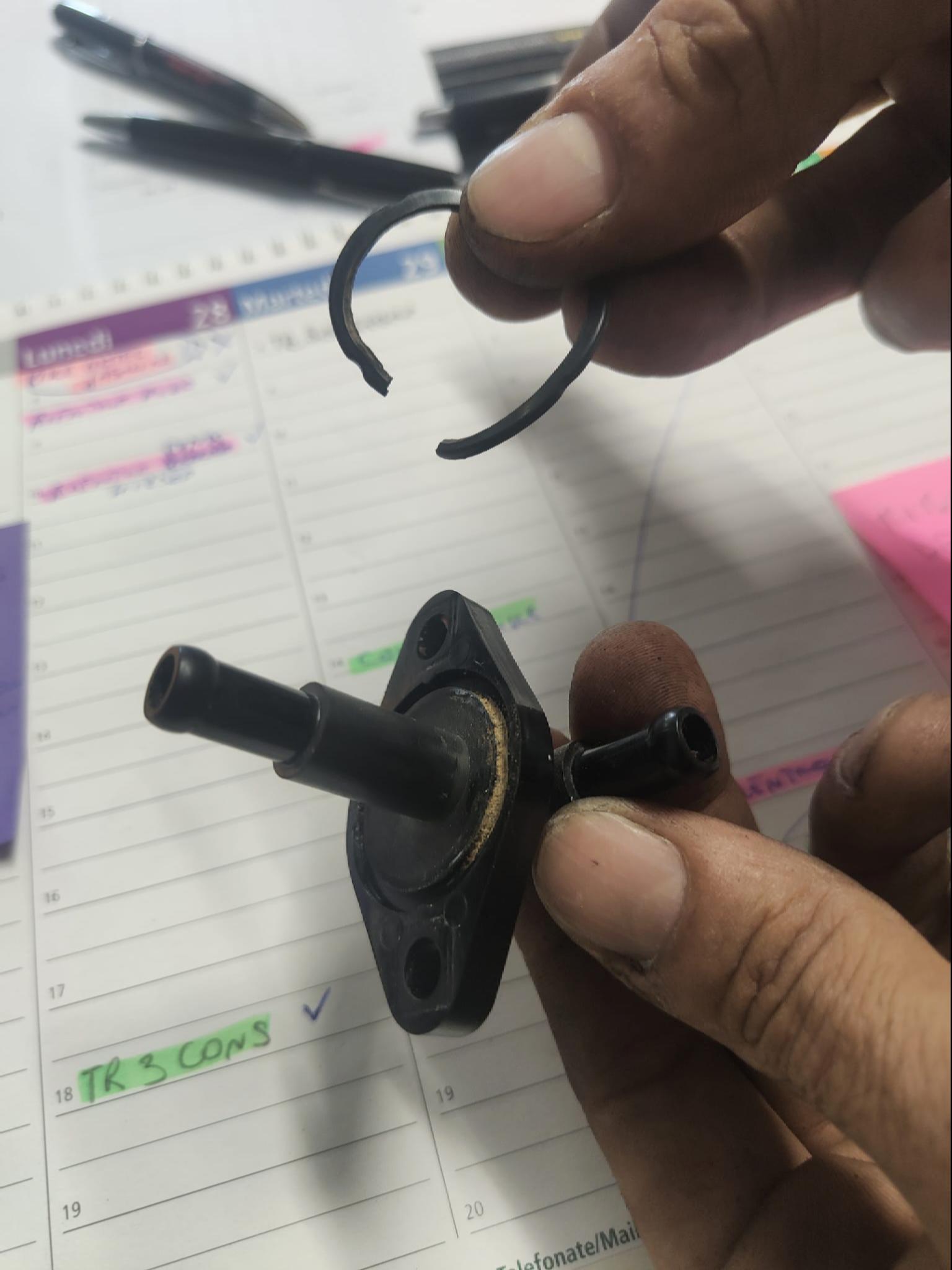 Das ist ein O-Ring mit der Nummer 44348-04F00-000. Leider finde ich nirgendswo im Netz, welche Maße der hat, dann wäre es einfach einen passenden alternativ zu organisieren.