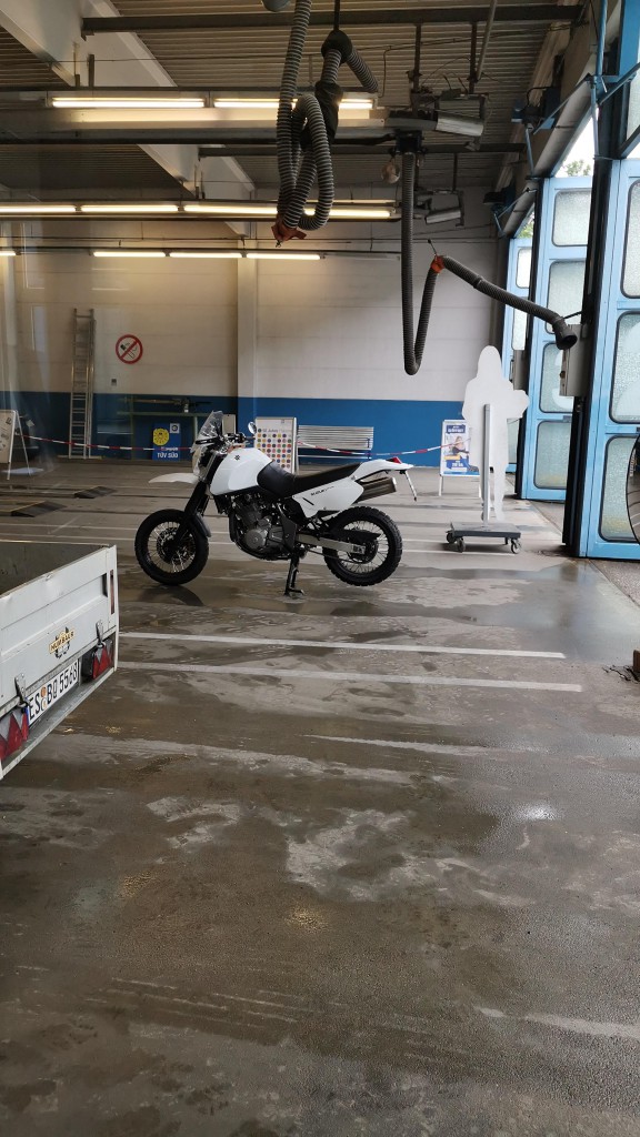 Update, war heute beim TÜV, alles eingetragen, und nochmal gewogen, mit vollem Tank fahrfertig 176 kg, 12 Eintragungen, 4 mit ABE der Rest Einzelabnahme 221euro für 2 Stunden Arbeit vom TÜV Onkel, allerdings mit dem sauschweren Original Auspuff, morgen kommt der kleine wieder drann mit 2.2 kilo