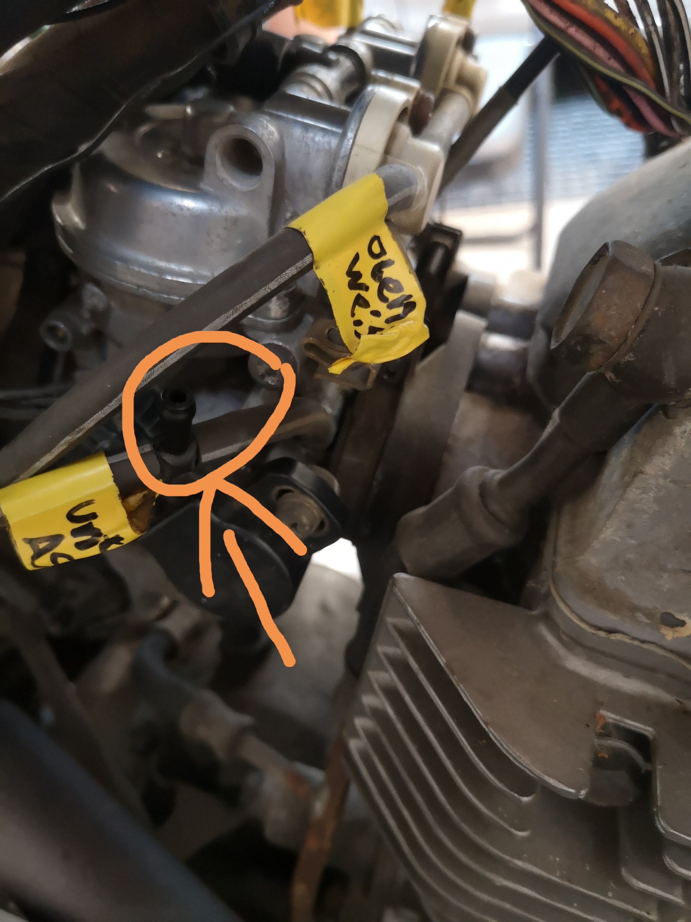 Habs selber gefunden meine ich. Sollte der Unterdruckschlauch vom Benzinhahn drauf kommen.