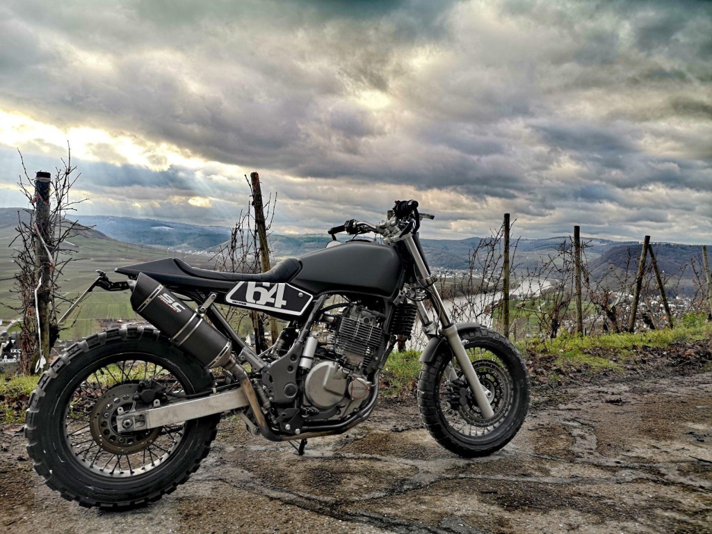 FT500 Tank, Flattrack-Heck, Eigenbau-Maske, 40er Delorto-Rundschieber mit Beschleunigerpumpe auf 1in2-Ansaugbrücke uvm., hier ist kaum ein Stein auf dem anderen geblieben.
